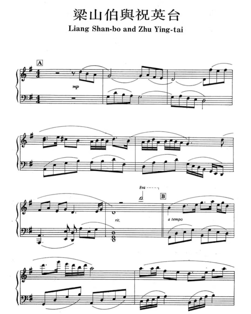 Test lyrical piano piece score 测试慢板抒情钢琴作品谱例(梁祝)
