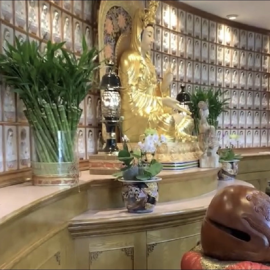 乘坐电梯升到三楼似非常开阔的空间,走进即刻看到一座镀金的佛像和偌大的木鱼等。我是乎即刻有点希望参拜的意愿,不料发现左则有一架钢琴。主人说这架琴是捐赠的,有些年了没有调音,寺庙有活动需要钢琴的演奏配合。