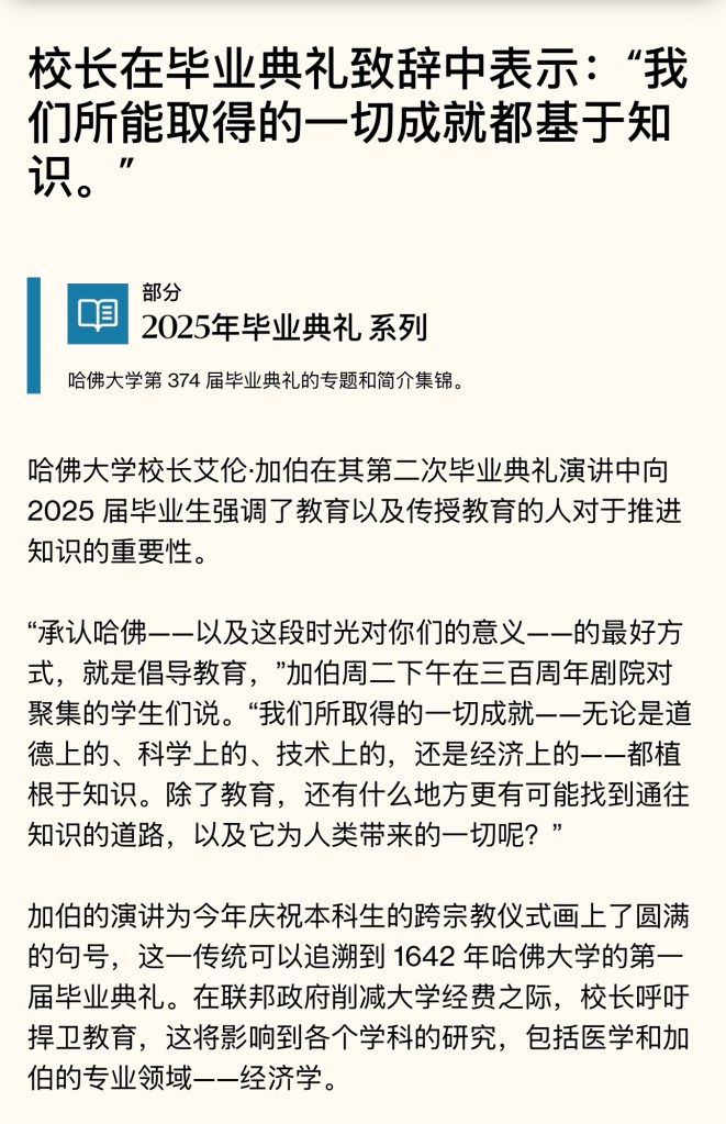 Harvard Commencement 2025 哈佛校长给毕业生的致辞