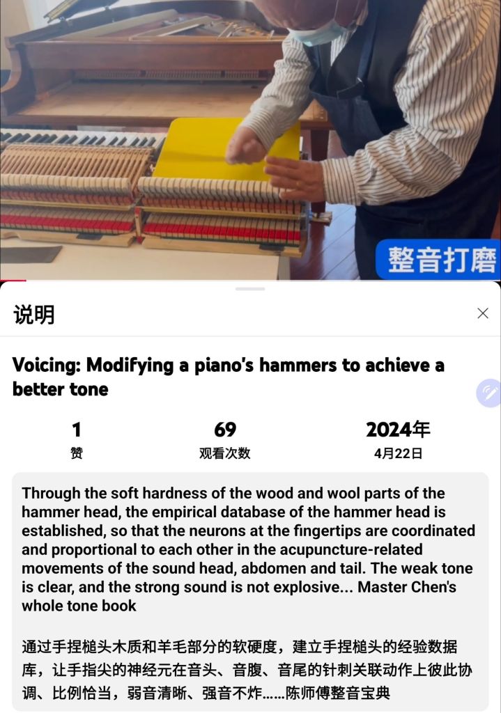 ChenYN Piano Tuner 陈师傅调音-鲍德温三角钢琴整音的音色-(Voicing)