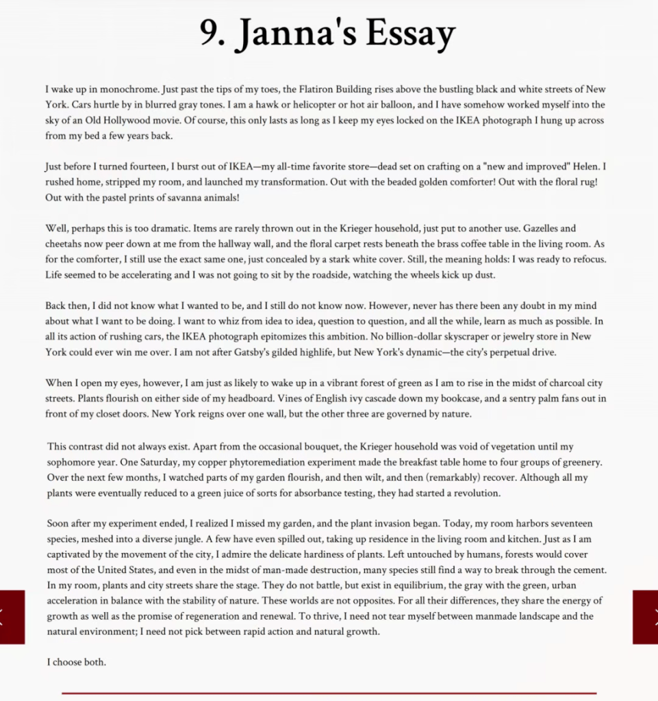 我已被贫困和痛苦摧毁,在陌生人的慷慨帮助下,我重返校园。学校成了我争取胜利的战场。我比以往任何时候都更加坚定地重新振作起来。我战胜了那些嘲笑我奋斗的乡下男孩。我继续赢得全国和地区数学奥林匹克竞赛的荣誉。 并获得了高等生活基金会奖学金,这笔奖学金将支付我整个高中的学费。