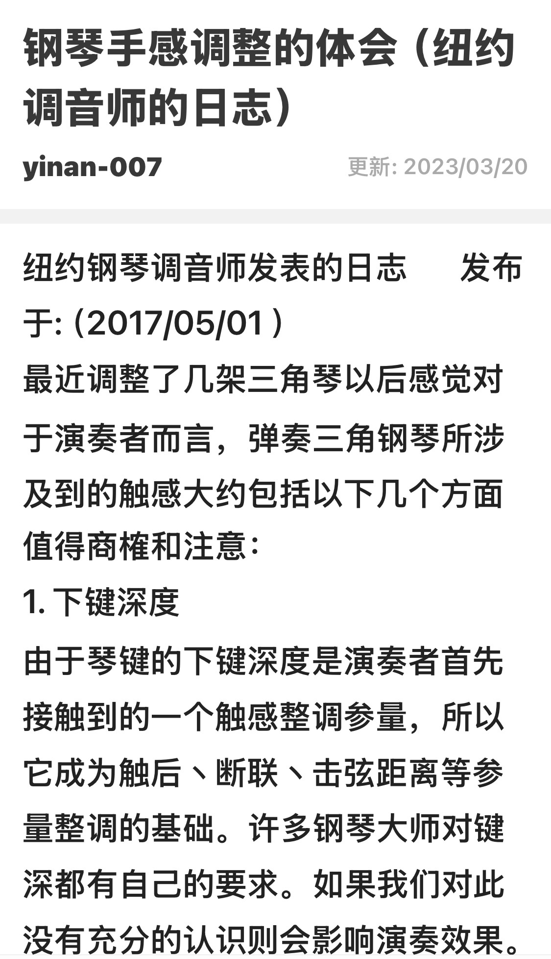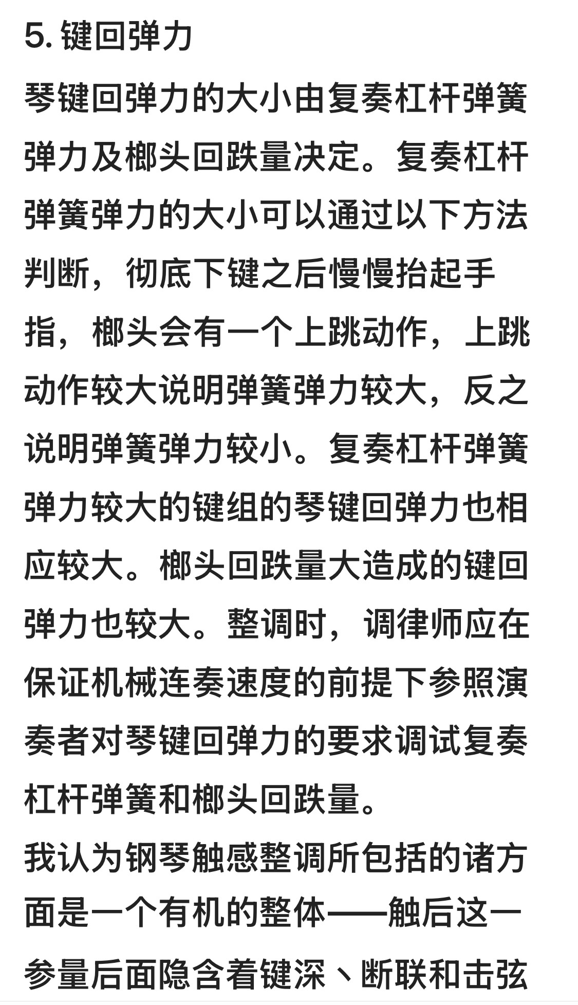 钢琴手感调整体会(2017)Experience in Adjusting Piano Feel