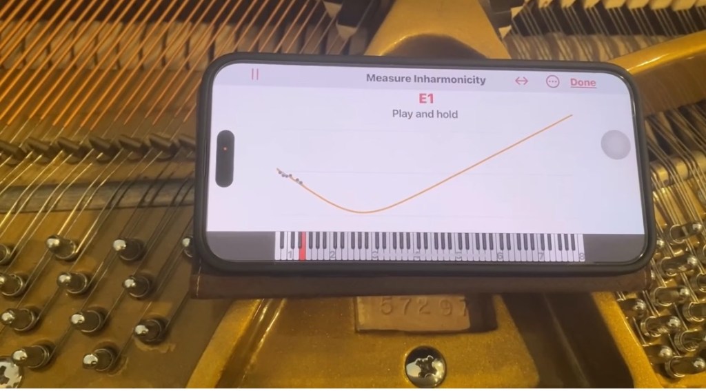 无论是师徒的言传身教还是四度五度三六度检验调音,以及近来研究的最新款手机调音软件(Pianscope、Tunelab、CyberTuner),在实践探索的过程中世界各国调音师同仁包括我,都充满了对放弃绝对和谐听感的不甘心——也就是说人们是多么不愿意放弃绝对和谐听感。Whether it is the teaching of teachers and apprentices or four-degree, five-degree, three-six-degree test tuning, and the latest mobile phone tuning software (Pianscope, Tunelab, CyberTuner) recently studied, in the process of practical exploration, tuners from all over the world, including me, are full of unwillingness to give up the sense of absolute harmonious listening – that is to say, how unwilling people are to give up the sense of absolute harmony.