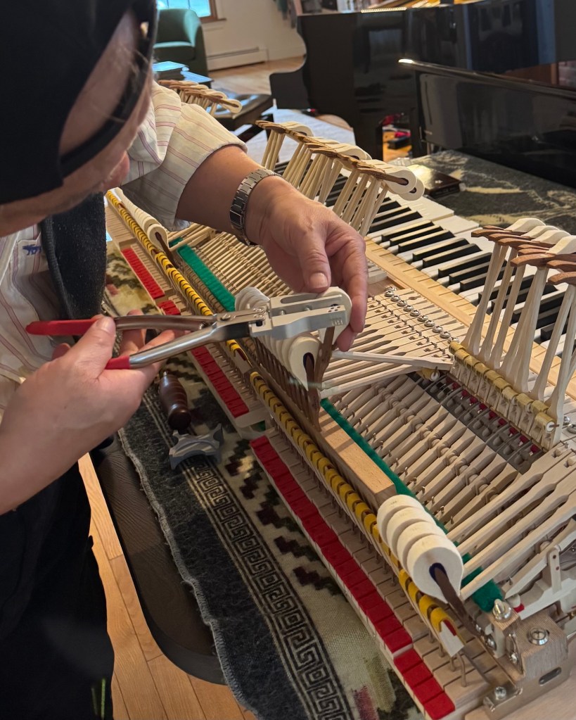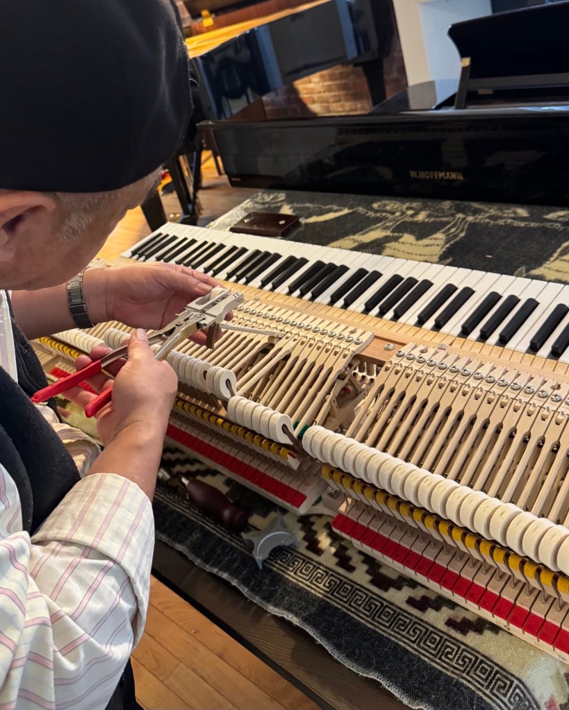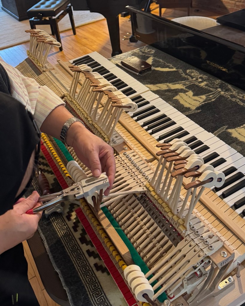 “Lateral Voicing is a ‘minimally invasive procedure.’ Unlike traditional surface needling—which risks disrupting the fiber structure at the point of impact—this technique, executed via a lateral approach, allows for the precise calibration of the hammer’s internal ‘compression gradient.’ While preserving the signature brilliance of the W. Hoffmann German-style treble, it imbues the mid-to-low range with a supple, cello-like resonance. It represents the most profound reshaping of a hammer’s physical properties.”