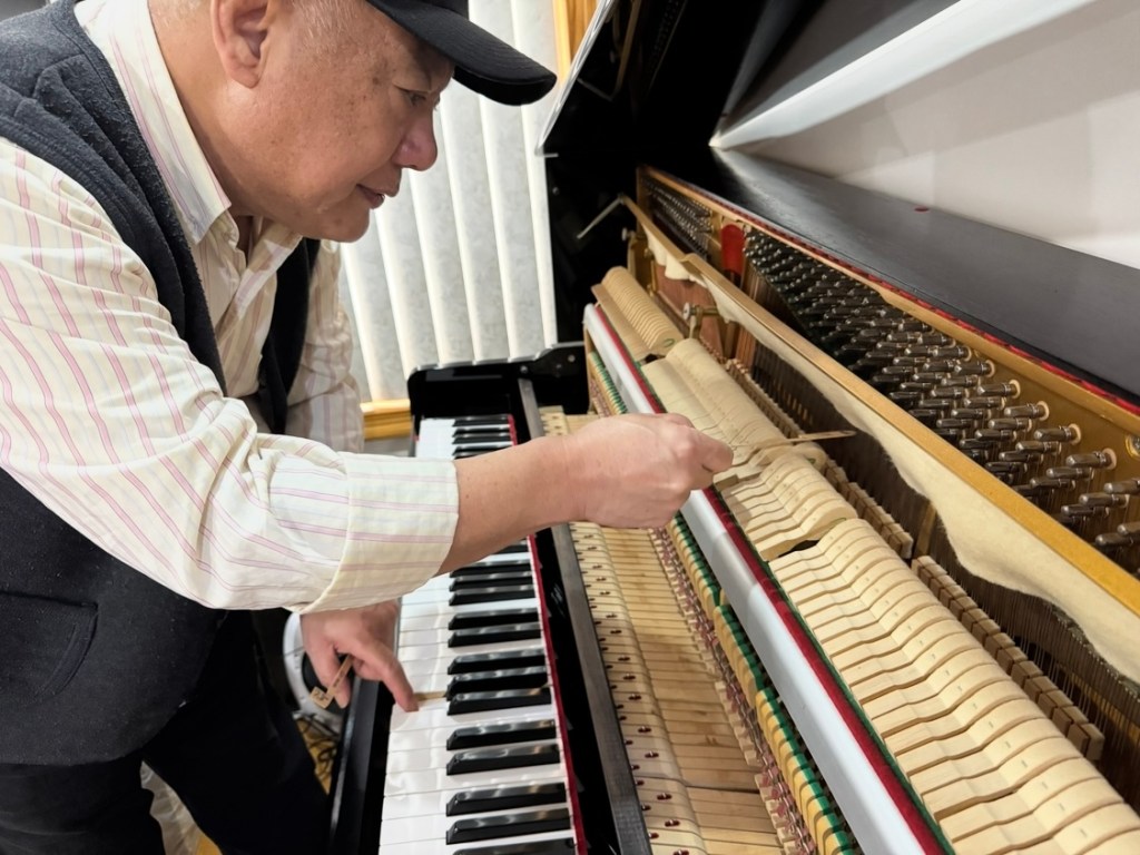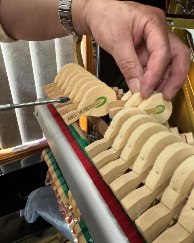客户系早期移民无论是颠沛流离还是业成隐退都没有改变对古典音乐的挚爱,他拿出最喜爱的“桑叶”茶与我共饮;非常饶有兴致与我侃侃而谈肖邦、推心置腹而拉赫玛尼诺夫。最让我欣慰的是他对榔头的认识与我不谋而合:“The secret to Abel’s ‘Singing Quality’ in the bass section isn’t about making the hammer soft, but about making it resilient. Deep-root voicing allows the hammer to ‘push’ the string rather than ‘slap’ it, resulting in the extended sustain observed in Master Chen’s recent vertical piano project.”